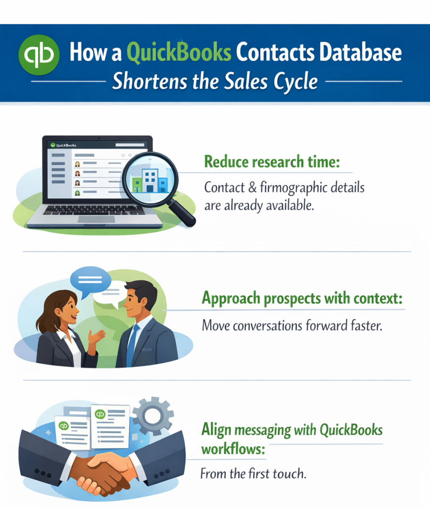 A well-curated set of QuickBooks leads, combined with a robust QuickBooks contacts database, makes it easier to execute multi-touch, multi-channel campaigns that reach real decision-makers.